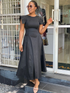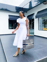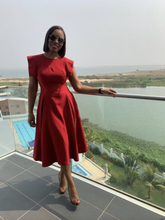 Block colur fit and flare dress . MIDI length with flap sleeves, synched at the waist to give it a feminine silhouette.